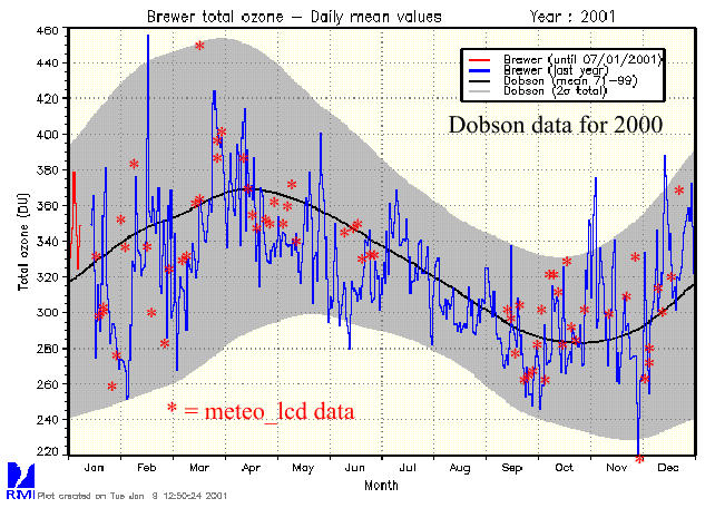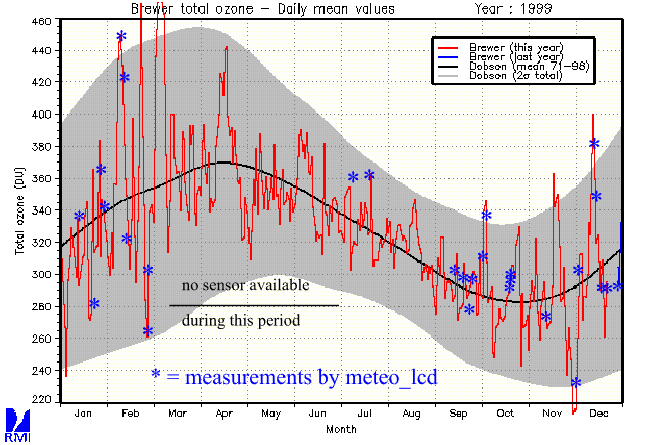 | also... | an intercomparison between the ozone measurements of the Microtops II and those made by the Brewer instrument at the RMI at Uccle! |