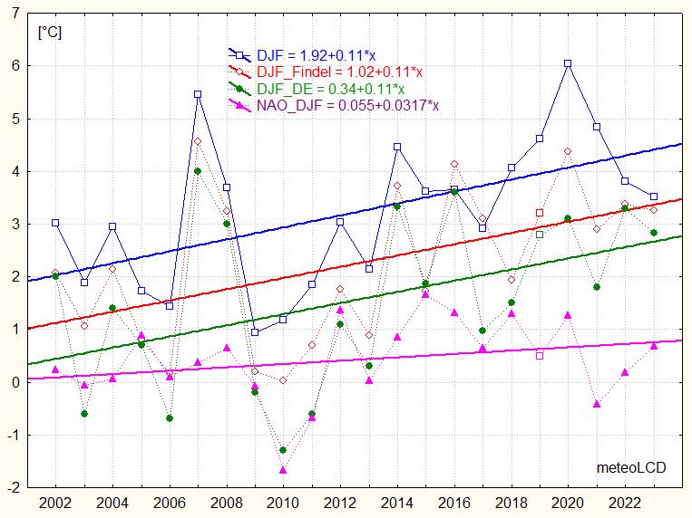4. The winter trend since 2002 shows a warming of +1.1 °C*decade-1