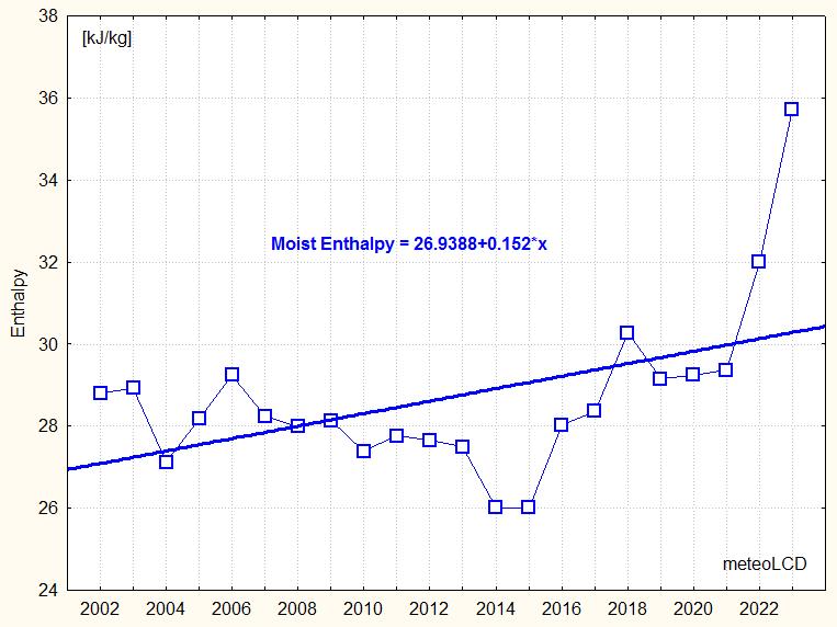 Mean moist enthalpy of 2023: 35.72 +/- 14.94 kJ/kg See [24] on how the energy content of moist air is