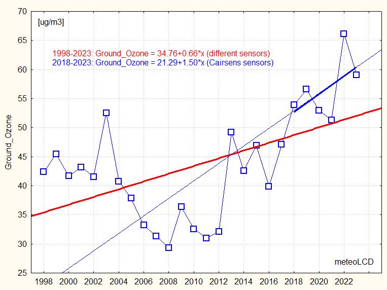 5. Since 1998 the ground O3 trend is positive (2022 reading is suspicious)