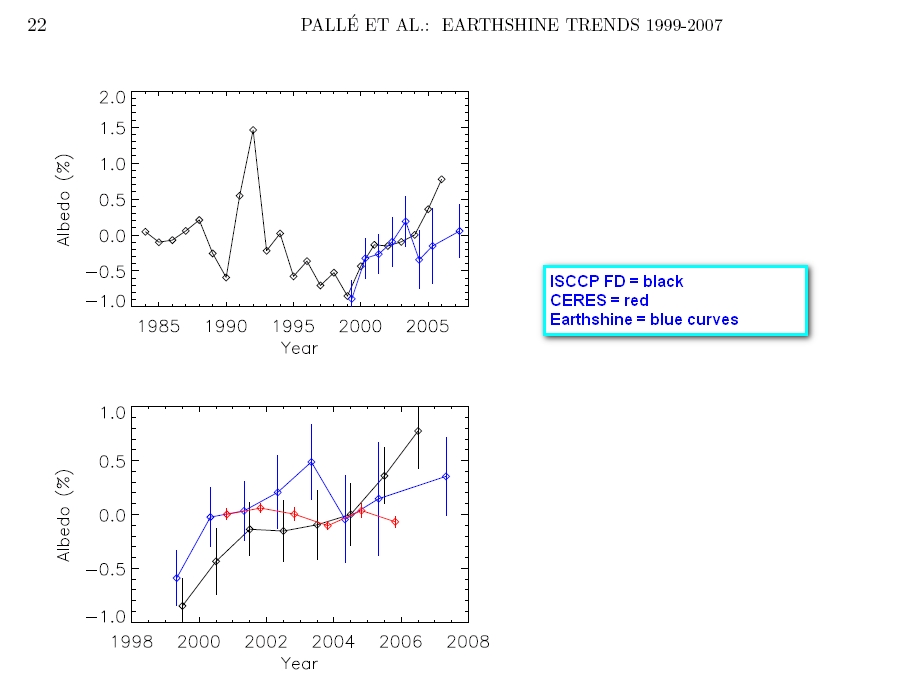 increasing terrestrial albedo seen in the earthshine is due to
