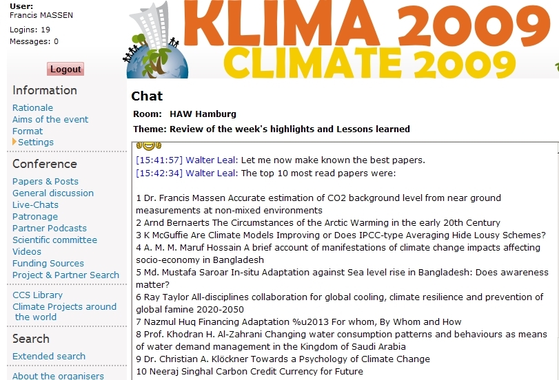New peer reviewed paper by F. Massen and E-G. Beck presented at the online Klima2009 conference. First in the top 10 of 103 published papers! | |||