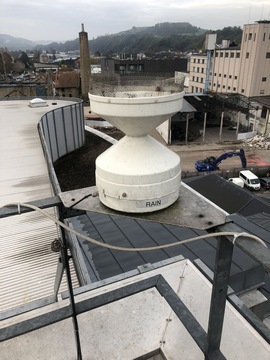 I replaced the old end-of-life Delta-T raingauge by a new ARG314, bought from UP GmbH (Germany). Fitting the new sensor to the base was some work, but starting at 11:00 UTC it is now active. The 2 pictures show at the left the old gauge, with its makeshift bird-protection, and at the right the new sensor with the optional bird scare crown. This protection is an absolute must, as the many birds around meteoLCD consider the raingauge as being sort of a bird-loo, and their droppings quickly block the outlet channel to the tipping buckets. The new sensor has the same sensitivity as the old one: one bucket is 0.2mm precipitation (actually 0.197mm, but we will take this as 0.2mm). The bird spikes are not beautiful, but hopefully they will do their job and scare these flying shit-throwers away! | ||||||