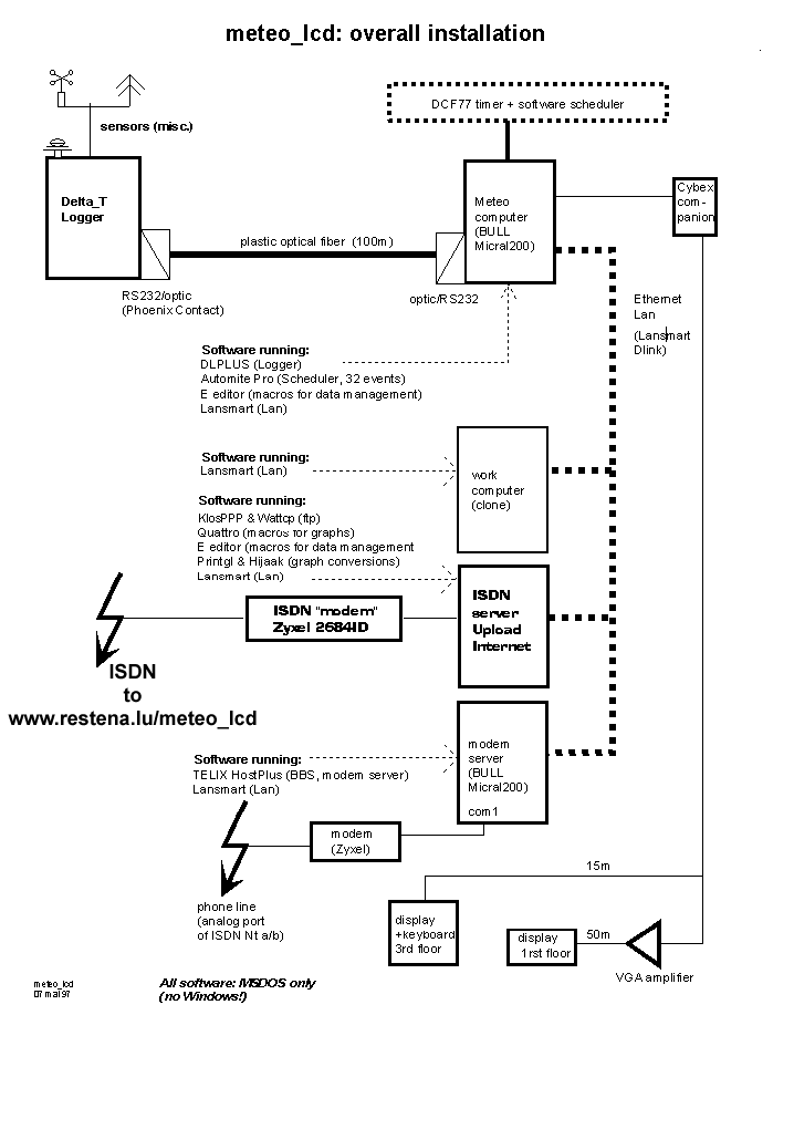 16mal pro Tag werden die Daten der meteorologischen Station auf den Internet-Server www.restena.lu/meteo_lcd überspielt, und die wichtigsten (Temperatur, Gesamtsonneneinstrahlung, UVB, Ozon, CO2) grafisch dargestellt. Diese Grafiken werden also praktisch jede Stunde aktualisiert. Damit leistet meteo_lcd einen wichtigen Beitrag zur allgemeinen Information, und stellt die einzige frei einsehbare "near-live" Quelle für diese Umweltdaten in Luxemburg dar.