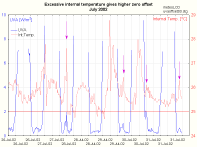 Lets us start by documenting several situations that show in a very clear manner that internal temperature rise (even of short duration) increases the zero-offset.