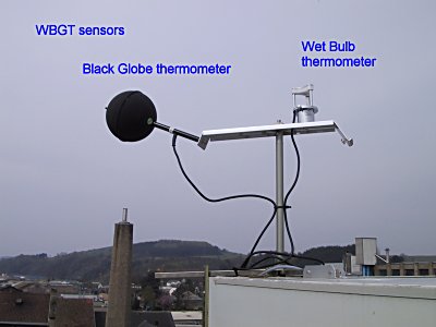 WBGT (Wet Bulb Globe Temperature = Heatstress-Index) . Installed